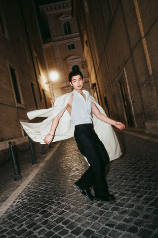 Shawn Thia 程家颉 shot by Chua Wei Jie styled by Daryll Alexius Yeo, makeup by Yiqing Wu, for Bvlgari in Rome, Italy.