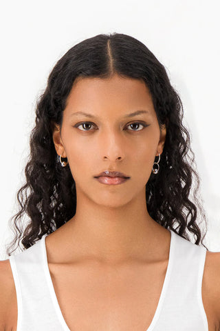 Part of Justine Clenquet's permanent collection, Lana hoops are made from brass dipped in palladium and sterling silver. Silver-tone mismatched small round hoop earrings with beads. Nickel-free and sold per pair, these earrings boast a simple and modern design, making them an essential accessory that pairs perfectly with any outfit. Designed and handmade in France.