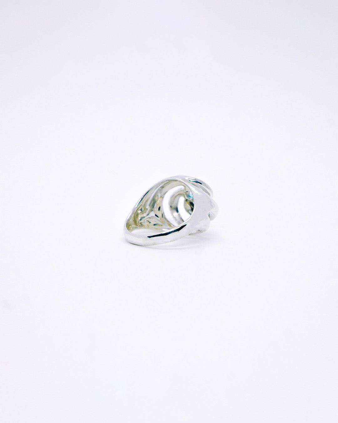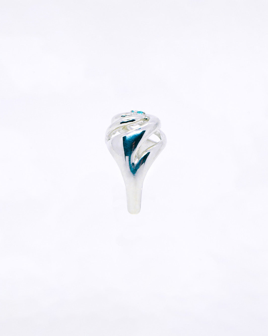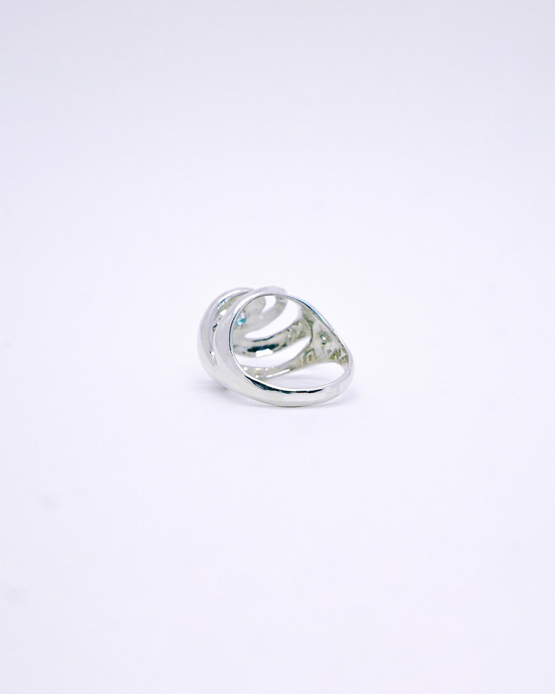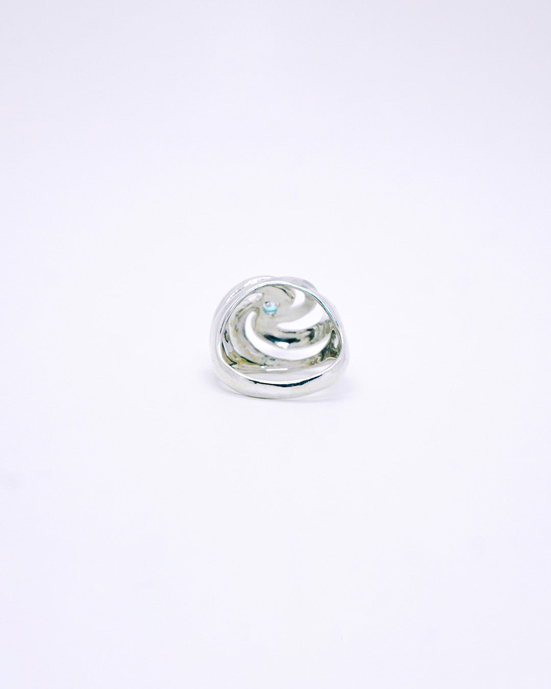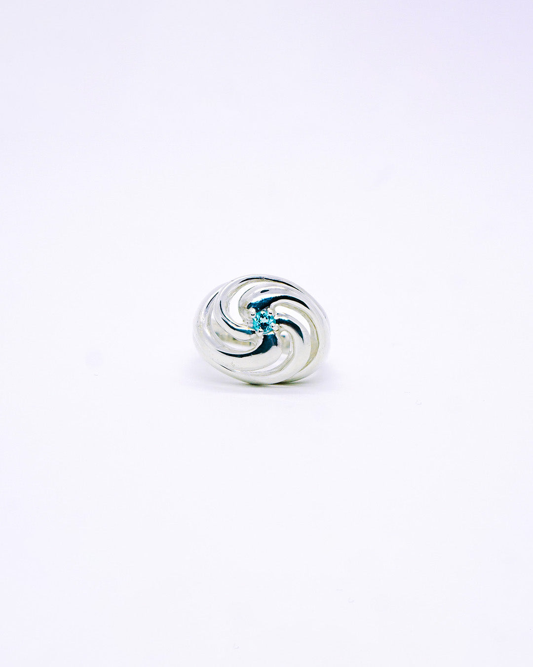 Afloat Ring crafted in 925 sterling silver, set with topaz, a semi-precious gemstone in an ice blue tone. Finished with the engraved Miserevé logo and official hallmarks. Designed and ethically made in Milan, Italy.